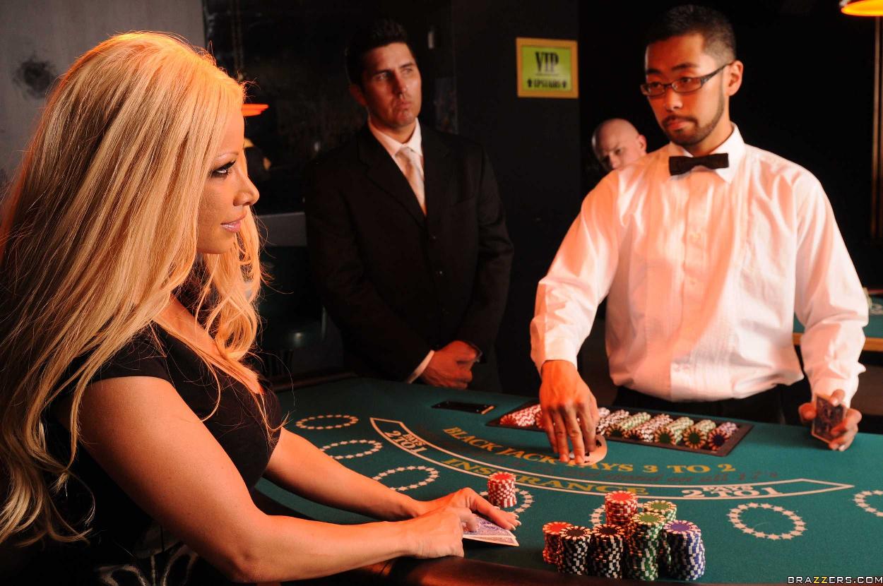 It's been quite a while since Gina Lynn's been in the blog....I've really missed her and I'm sure you have too!....I was certainly glad I had an opportunity to put her in here again....I just wish it could have been under better circumstances!......You see.....Gina has been a very naughty girl!....She thinks that being a pornstar means she doesn't have to follow the rules....And while she was out at James's casino last night, instead of just obediently loosing all of her money like the rest of us have to, Gina decided to cheat!.....When the pit boss saw how much Gina was winning, he knew there was something fishy going on....So he called James and asked him to check the security camera....and sure enough, Gina had a partner who was looking at the dealer's cards and giving her signals!......James has a special way to deal with pornstars who cheat....Can you guess what it is?.....No....He doesn't ask them to say they're sorry and promise never do it again.....He takes them into the back room and gives their cheating pornstar pussies a good hard fucking!....I'm sorry we had to punish you in this way, Gina....But hopefully, you've learned your lesson.....The next time we see you tied to a chair with your tits out, let's try and make it for the right reasons!