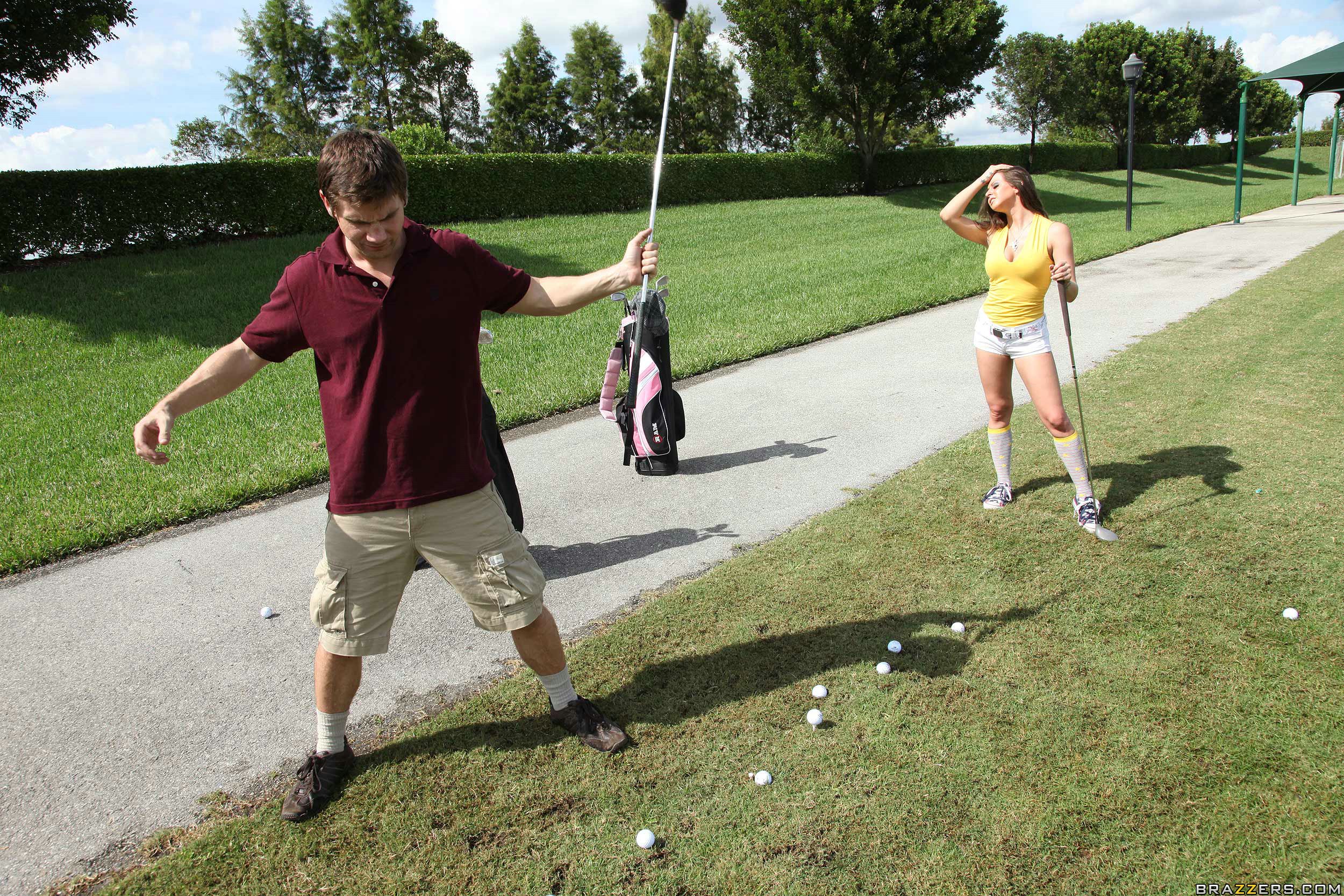 Wednesday, December 30th, 2009| I'm always, a little, concerned when I hear that Rachel RoXXX is doing a new scene for Brazzers!.....I always wonder what fucked-up shit they're going to have the poor girl doing next!....Don't get me wrong.....Rachel getting fucked in a helicopter was awesome!....And it was watching her hanging upsidedown from a wall while sucking Johnny Sins's dick, one time, that, originally, made me such a huge fan!......That said.....I do, rather, worry about her, sometimes....So it was a nice surprise when I tuned into the latest from Big Tits In Sports and saw that Brazzers had decided to give the busty, young daredevil a break by casting her in the, relatively, hazzard-free world of golf!.....Even here, though, Rachel's golfing student, Shane Dizzle, seemed to be having terrible trouble with his swing...and the erratic way he was thrashing his club around, could have easily taken one of Rachel's eyes out!.......But luckily all Shane needed was a little incentive....And once Rachel tempted him with the promise of some post-practice-pussy, he started to handle his 9 wood like a pro!.....I must admit, I gave a huge sigh of relief when Rachel emerged from, yet, another Brazzers scene, unscathed!......Shane breathed a huge sigh of relief, as well!....But I'm not sure if that was because he knew that Rachel was OK....Or if it was because he was cumming all over her tits!